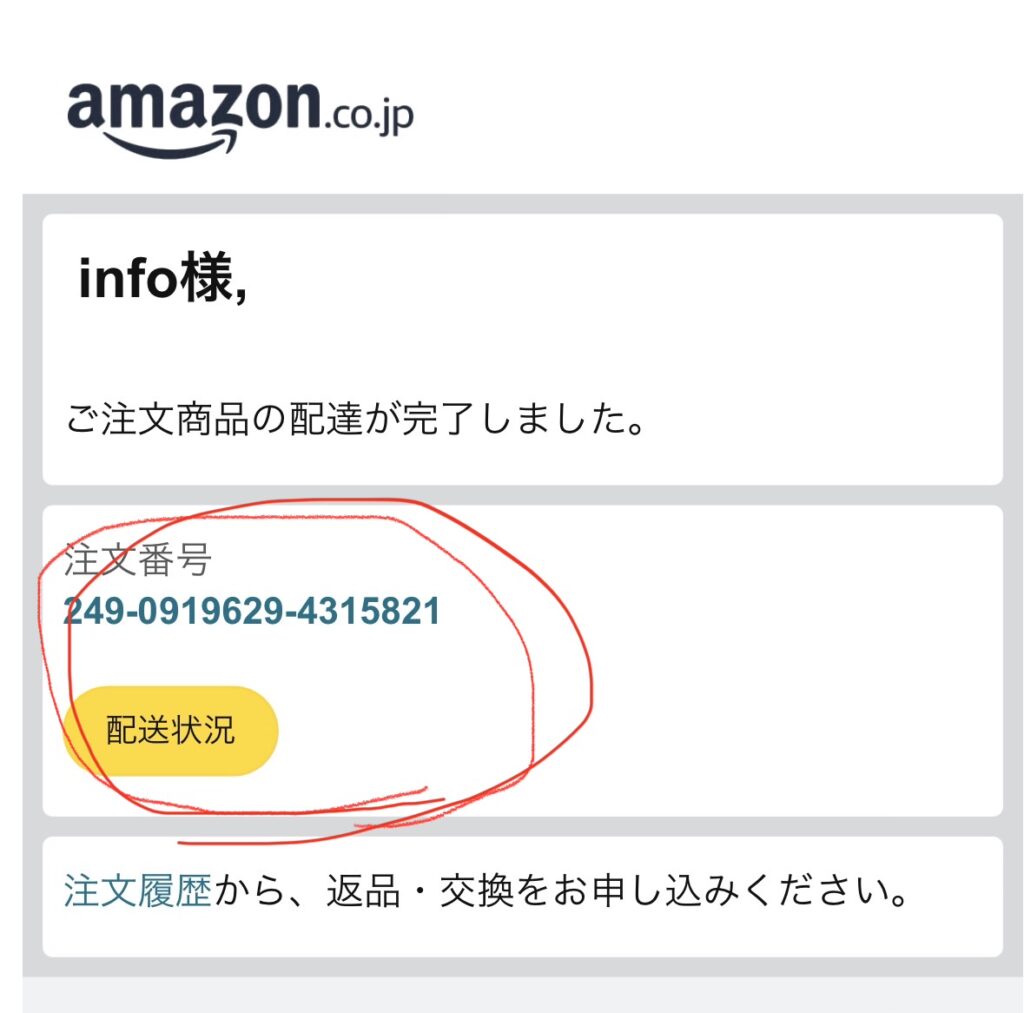 メールに届いたリンクではなく、Amazon公式アプリからアクセスし配達状況や注文内容をチェックしましょう。またはAmazonのホームページでもOKです。
