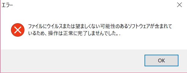 「Windows Defender」がウイルスを検知しアラートが表示されました。