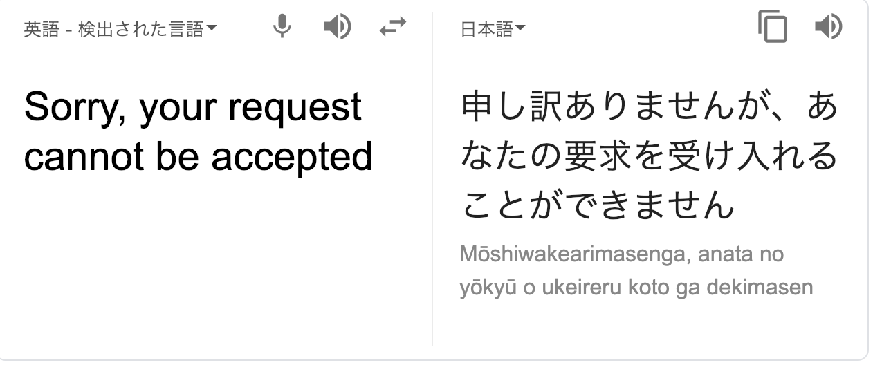 翻訳の意味は、、、あなたの要求を受け入れることができない??