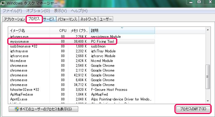 下記プログラムが動いていたら、「プロセスの終了」をクリックします
